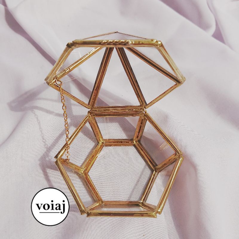 Ring Box Prisma KerucutMaterial : Kaca dan KuninganSize : 8x8x7cmSangat cocok untuk hantaran pernikahan atau lamaran. ▪️Wood slice dijual terpisah▪️Sudah termasuk packing bubble wrap dan kardus▪️Barang pecah diganti 100%Ready