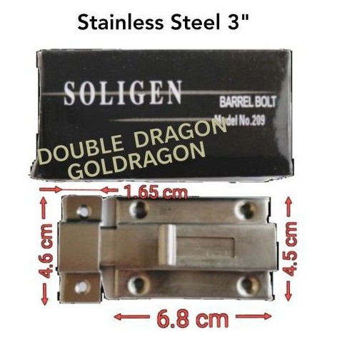 Jual Murah Perlengkapan di Kabupaten Banyuwangi Grendel Kotak 3" Stainless Soligen (grendel Balok 3" Soligen / Grendel Wc 3" Soligen) dari Goldragon Kota Jakarta Utara