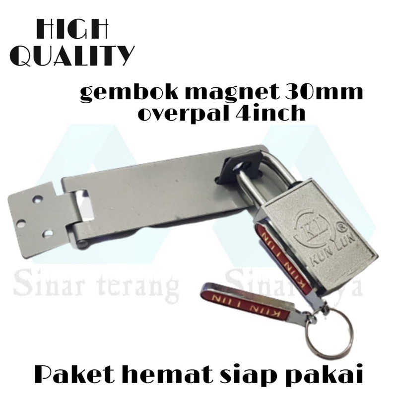 paket siap pakaipaket terdiri:gembok magnet 30mmoverpal 4inchcocok buat pintu kamar,pintu rumah supaya lebih