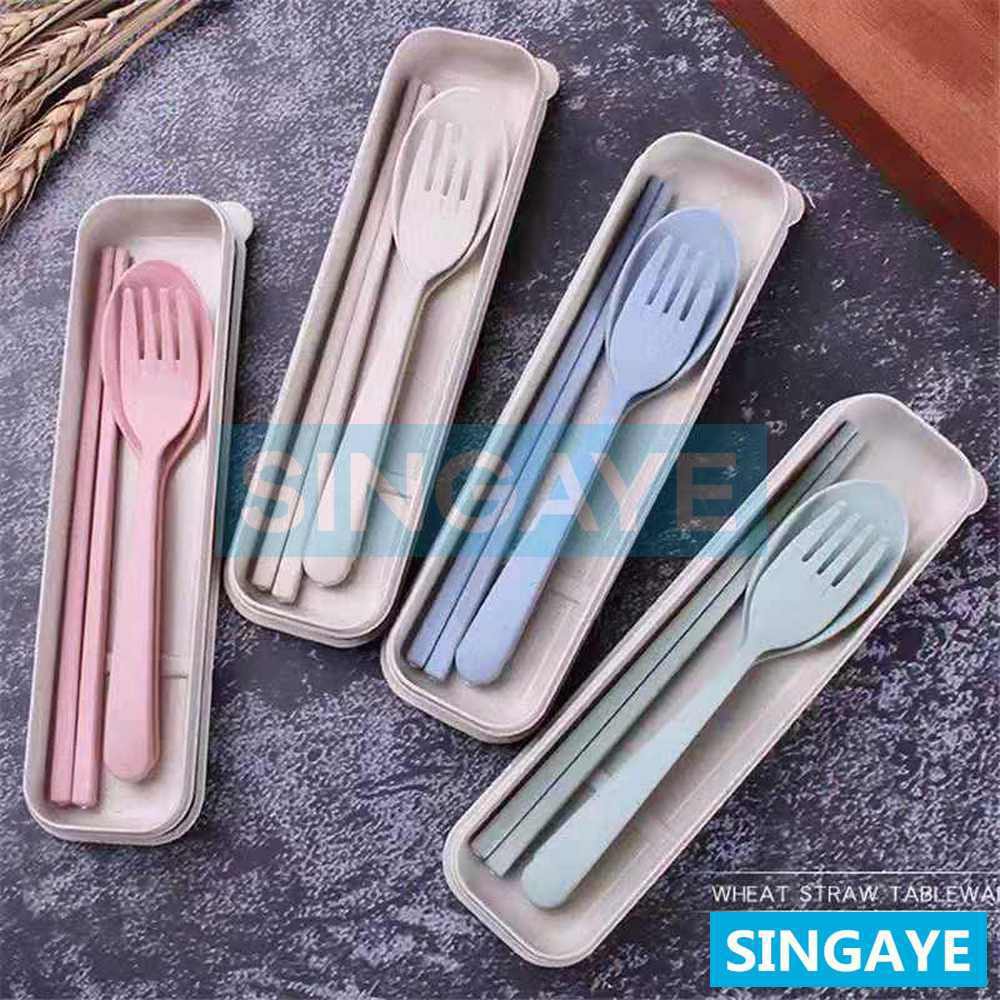 Agen Perlengkapan di Kabupaten Malang 3pcs / Set Peralatan Makan Sendok / Garpu / Sumpit Bahan Wheat Straw Untuk Travel / Camping Cuc-156 dari Tidak Ada Merek Kota Tangerang