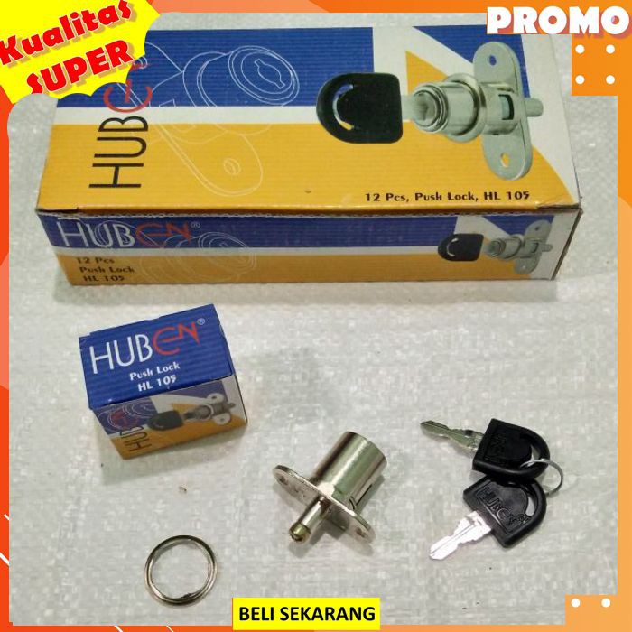KUNCI TUSUK/TEKAN/PUSHLOCKTIPE HL 105MERK HUBENKunci laci lemari etalase Asli kualitas bagus murah kuat awetjual partai & eceranKahanan St