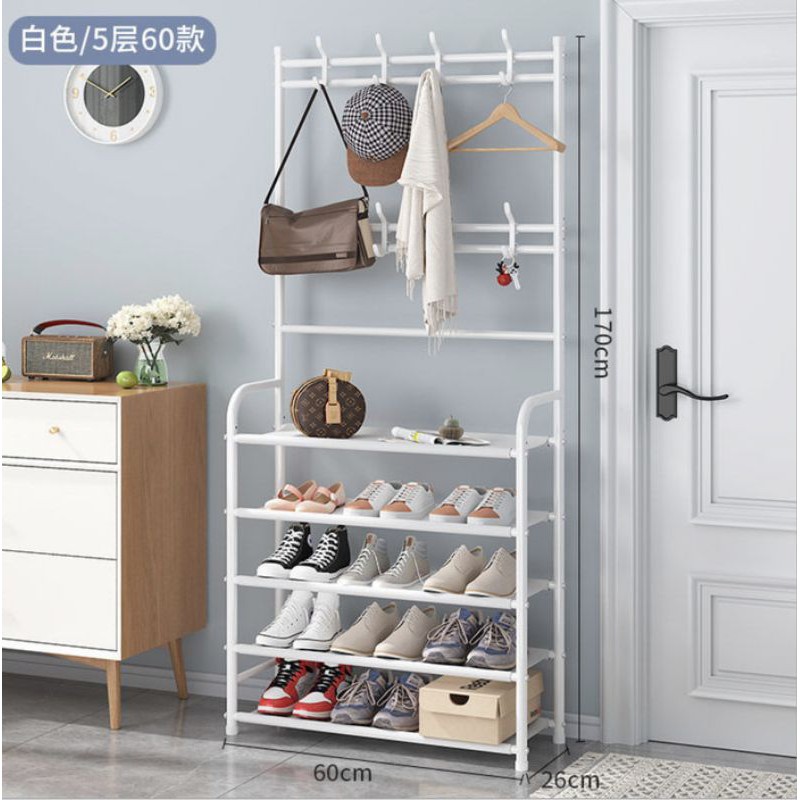 READY STOCK..LANGSUNG ORDER YA..PESAN DIHARI KERJA SEBELUM JAM 14.00 DIKIRIM DI HARI YANG SAMA.Note : Hati hati dengan produk tiruan dengan harga yang murah.Jangan hanya karena selisih harga anda membeli produk palsu.READY WARNA putih hitamMultifunction Standing Hanger adalah gantungan multifungsi dengan design modern dan portable, mudah dibuka pasang.Model standing, bisa untuk gantungan pakaian, tas, jas, topi, dasi dan aksesoris atau apa aja yang bisa digantung. Model standing lebih modern dan irit tempat, bisa dipakai di rumah atau di kantor.dilengkapi dengan rak sepatu / rak orginizer.Dari bahan besi anti karat dengan polesan warna anti luntur, bisa dipakai untuk jangka waktu lama, kuat dan kokoh. Pemasangan sangat mudah, cukup disambung dan dibaut, baut dan panduan pemasangan sudah tersedia di dalam kema
