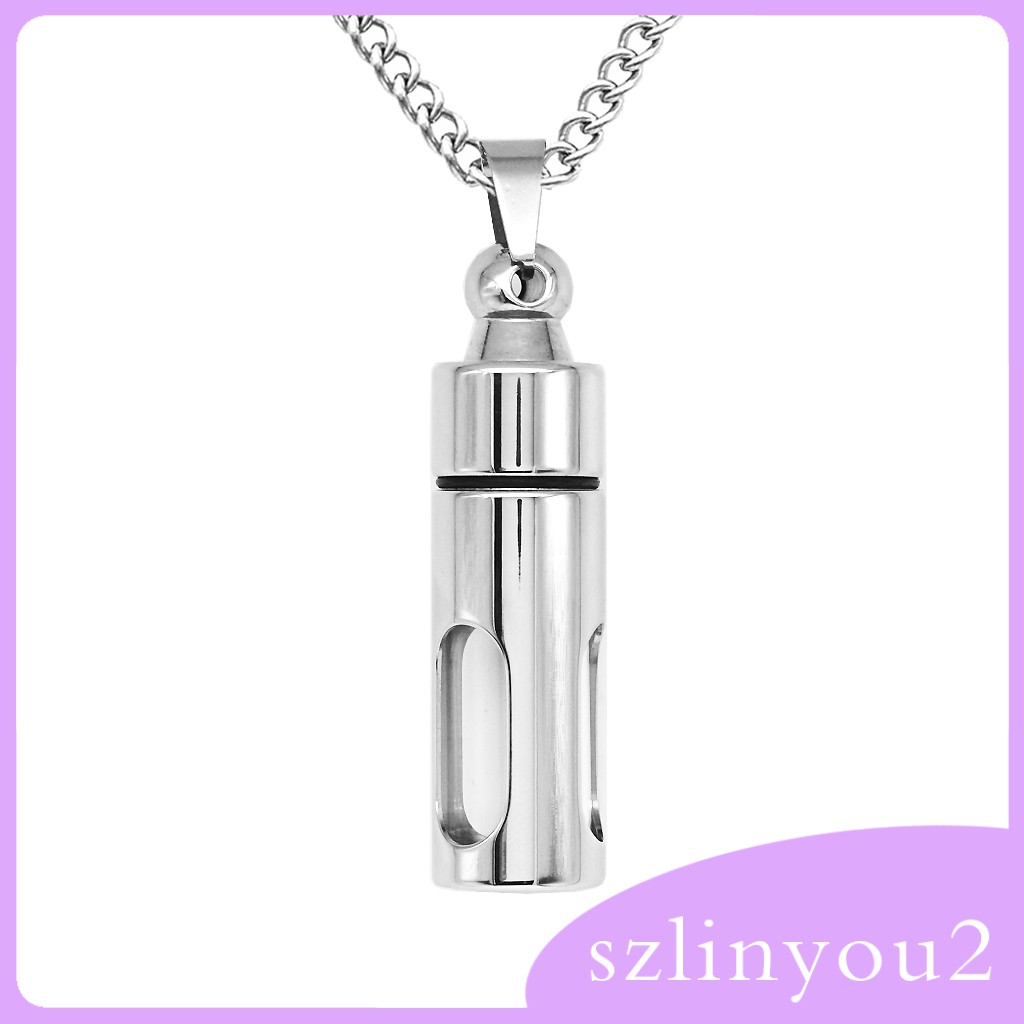 Description:Material: Stainless Steel,Glass Bottle;Pendant diameter approx. 13mm, chain 55x0.35cm/ 21.6x0.13 inch;Cremation Jewelry, it also known funeral jewelry,remembrance jewelry or memorial jewelry is used as a remarkable way to memorialize a loved one or loved pet;This stainless steel keepsaker urn necklace features cylinder-shaped and with glass bottle in it. You can open it by screw, bottle capable to hold pill powders or liquid;Package Includes:1 Piece Urn Pendant Chain NecklaceNote:Since the size above is measured by hand, the size of the actual item you received could be slightly different from the size above.Item color displayed in photos may be showing slightly different on your computer monitor since monitors are not calibrated s