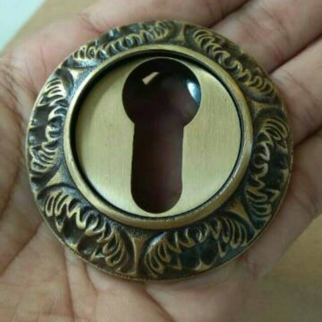 Aksesoris variasi tutup kunci pintuDiameter +-6 cmBahan : KuninganFinishing : Antik brassMenerima custom finishing Harga untuk satu set (satu pasang tutup/tutup depan belakang), sudah termasuk sekrup untuk pemas
