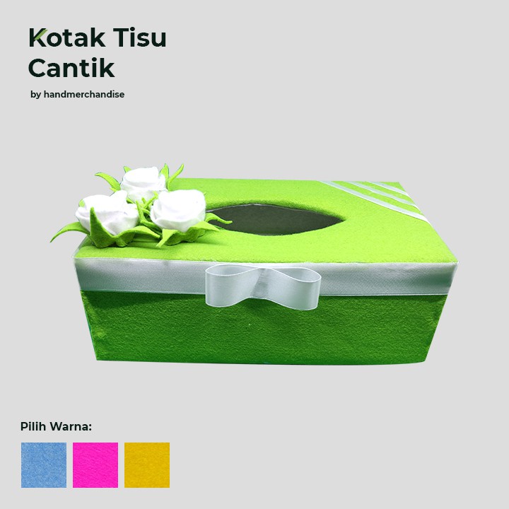 kotak tisu cantik model bunga macam model warnapilihan warna:pinkhijaubiru lautkuningukuran:panjang 24cmlebar 13cmtinggi 9cmbahan karton, kain flanel, dakron