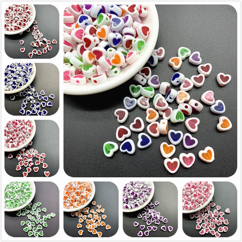Name: 50pcs / Pak Manik-manik Spacer Bentuk Hati Bahan Akrilik Ukuran 8mm Untuk Perhiasan